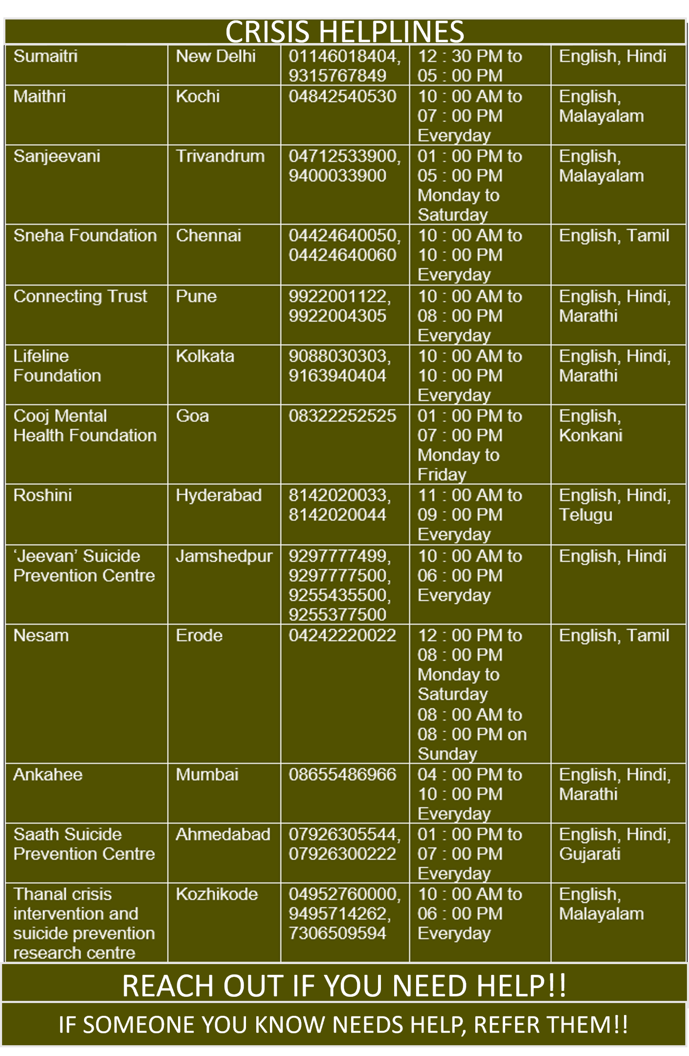 SUICIDE PREVENTION HELPLINES
